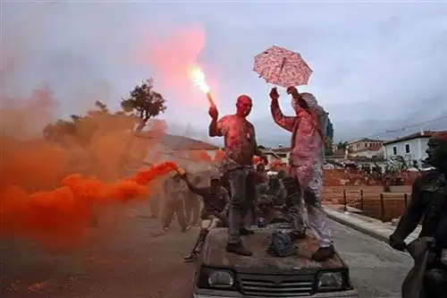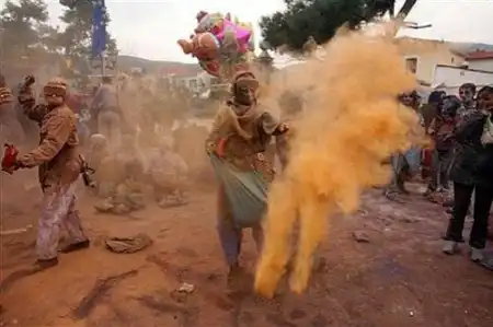 Так, весьма оригинально, отмечают в Греции начало великого поста … В чистый понедельник жители города Галаксиди вот уже два века подряд обильно посыпают друг друга мукой…