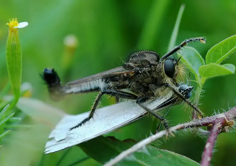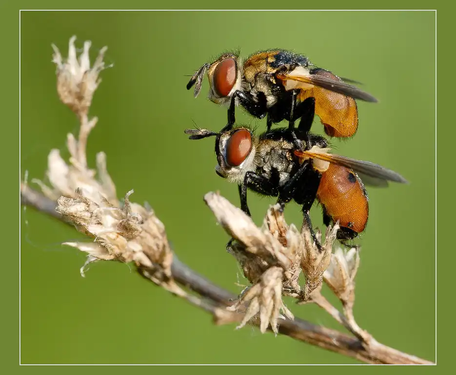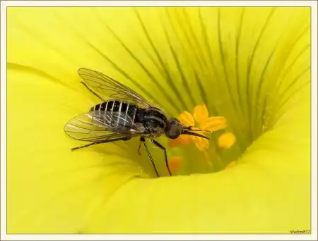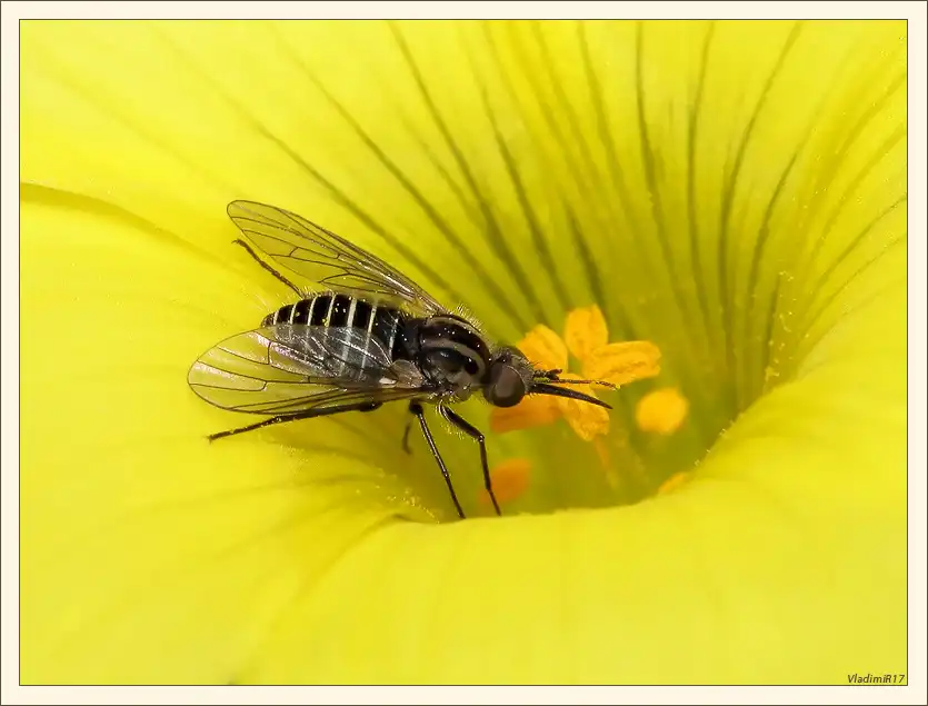 Журчалка Episyrphus balteatus (De Geer, 1776) на подлёте к бутону недотроги