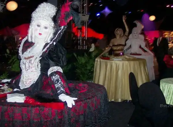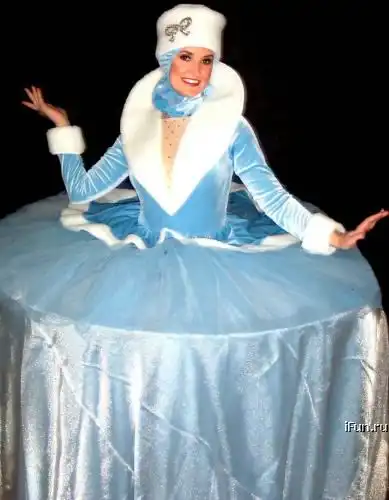 Классная идея для презентации или приёма. Человек-стол размещает на себе еду, ей же угощает, сам же развлекает!