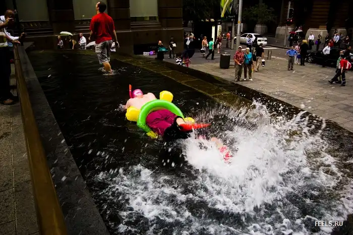 Чувак отжёг (а точнее - отмочил) в городском фонтане...