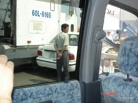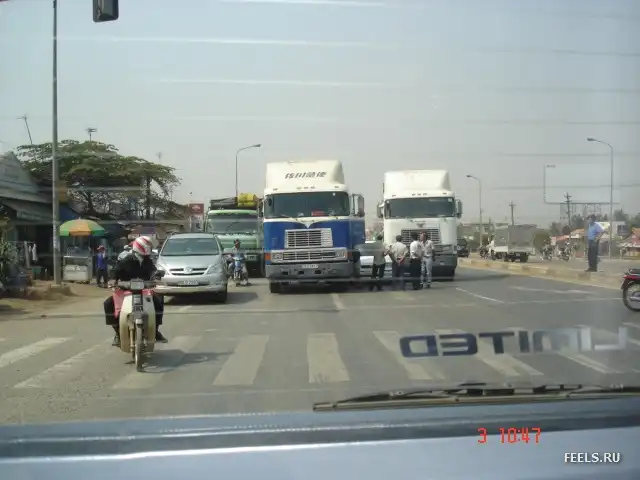 Зажувало между грузовиками