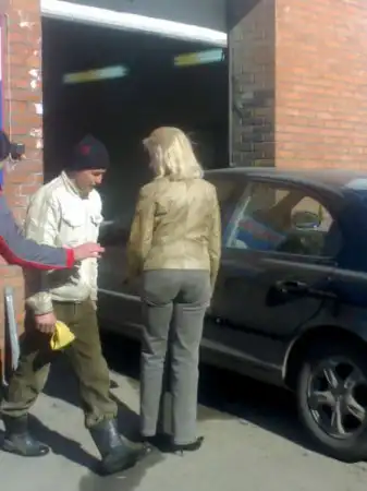 Тетенька пыталась вьехать на автомойку