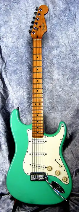 корпус - ольха; гриф - клен с накладкой из черного дерева, "сквозной"; датчики DiMarzio - D Sonic и Virtual PAF