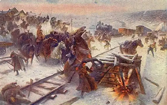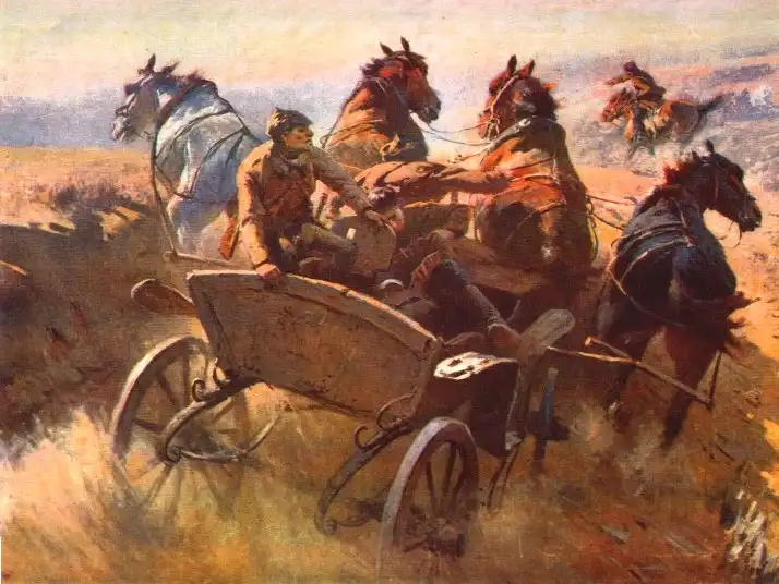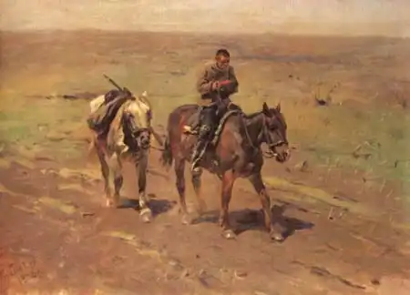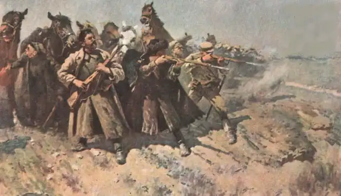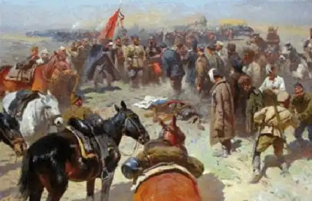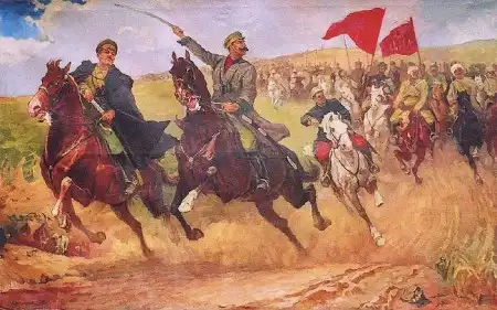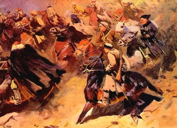 М. Греков. Отряд Будённого отражает атаку в пешем строю.