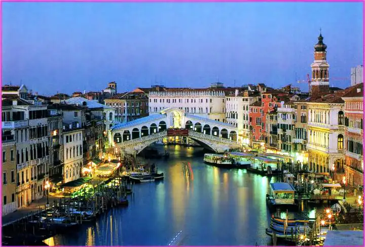 Венеция - город, который должен посетить каждый турист. Это самый знаменитый город на воде, напоминающий театральные декорации и сохранивший до нашего времени сказачную отмосферу эпохи галантных карновалов и дам в пышных платьях.Город расположен на архипелаге, насчитывающем около 180 островов ( вклю чая самые мелкие остравки) с населением 350 тыс. жителей. Историческая часть Венеции соединена с её более позднее застроенной частью четырехкиллометровым мостом с параллельными трассами для электропоездов и автомобилей. Этот мост простирается на большим каналом. Но это не единственный мост Венеции. Город по праву считается городом каналав и мостов : их насчитывается 160 и 400 соответственно.