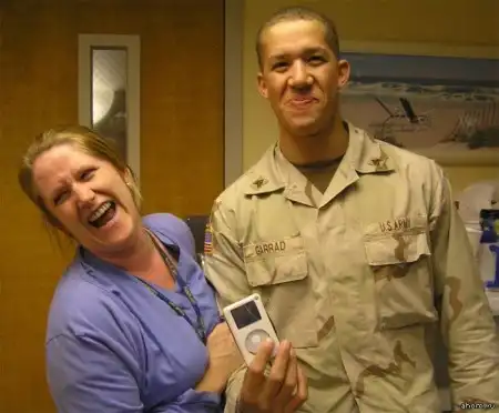 Кевин Гаррад (3я пехотная дивизия) заступил на патрулирование улиц в Ираке. И только он зашел за угол, как навстречу ему выскочили несознательные иракцы, вооруженные АК-47. В яростном огневом контакте противник был уничтожен, но вражеская пуля поразила Кевина в левую сторону груди. Именно там находился верный iPod, который замедлил пулю и не позволил ей пробить бронежилет Кевина.