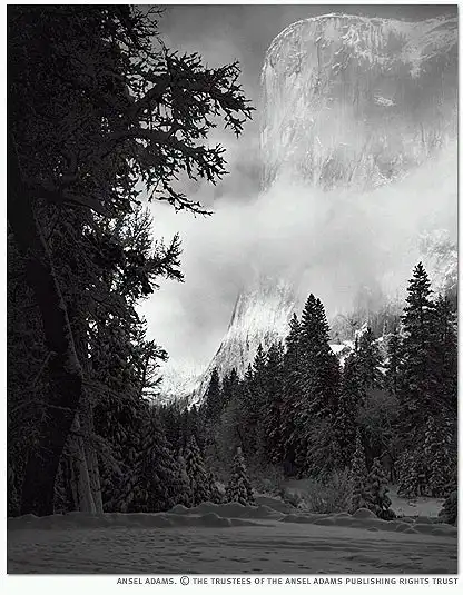 Ансель Адамс родился в Сан-Франциско 20 февраля 1902. Получив музыкальное образование, вплоть до 1930 зарабатывал на жизнь как пианист-преподаватель. Первоначально занимался фото в виде хобби, находясь на службе в Йосемитском национальном парке в горах Сьерра-Невада (1920-1927). Под воздействием П.Стрэнда решил к концу 1930-х годов сделать фотоискусство главной своей профессией. В 1927 опубликовал первую серию, Пармелианские позитивы Высокой Сьерры, а в 1930 - первую иллюстрированную книгу, Таос Пуэбло (Taos Pueblo).