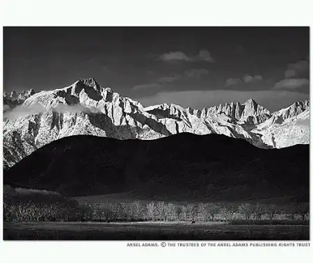 Cтихия его образов, крайне четкая, контрастно-фактурная и в то же время необычайно светонасыщенная, связана с разработанной мастером системой 10 световых зон, позволяющей с помощью экспонометра заранее определять художественный эффект всех участков композиции. Окончательно эта система сложилась в период создания им больших фотопанно для Министерства внутренних дел в Вашингтоне (с 1941).