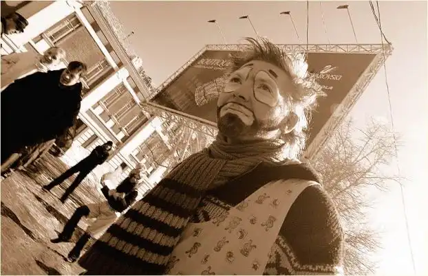 грустный клоун с первоапрельской акцЫи Евросети