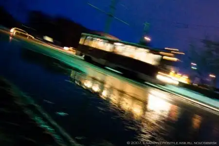 ночной трамвай спешит куда-то увезти своих пассажиров