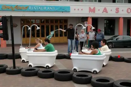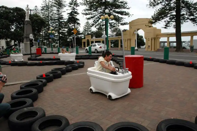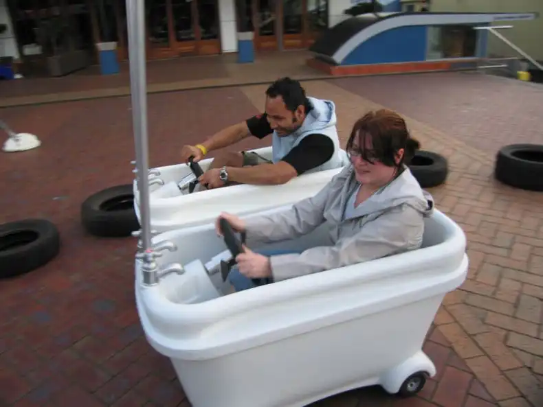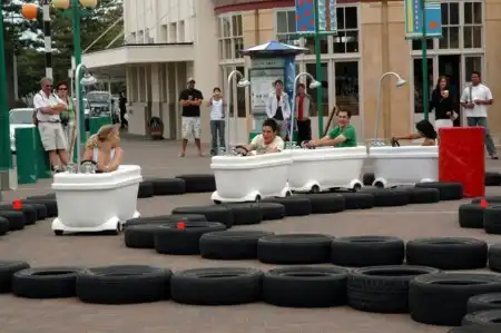 Народ развлекается как может, гонки на кроватях уже приелись, теперь в моде маленькие ванны.