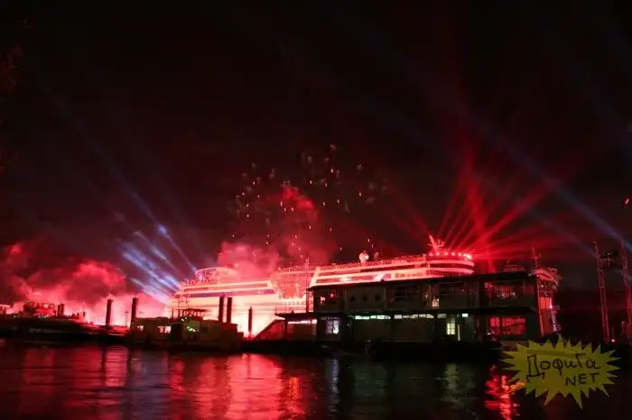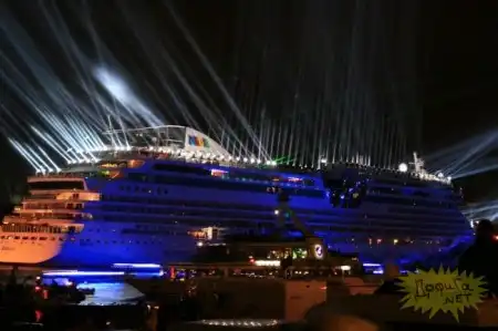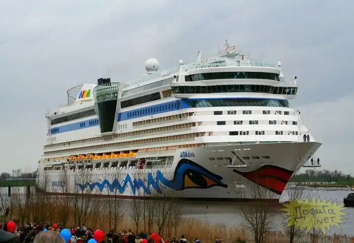Новое чудо кораблестроения пассажирский лайнер AIDADIVA был спущен на воду в Гамбурге , его длина составляет 253 метра, а на борту может разместиться 2500 пассажиров.
