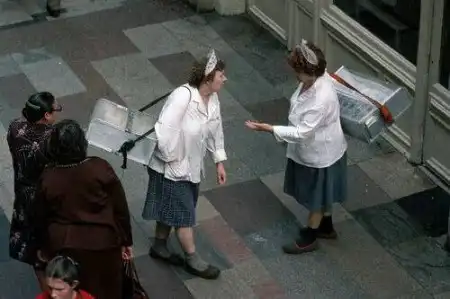 Обычно, пожилые женщины в белых, торговали папиросами и прохладительными напитками «Дюшес»