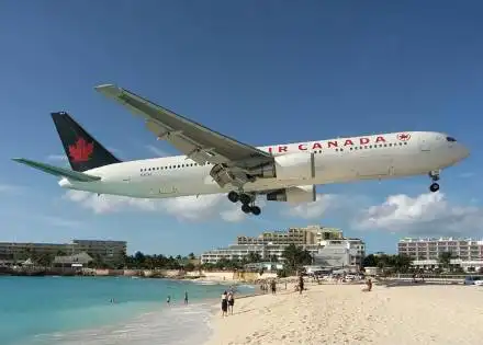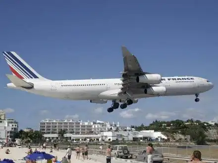 фотографии самолетов, заходящих на посадку прямо над общественным пляжом