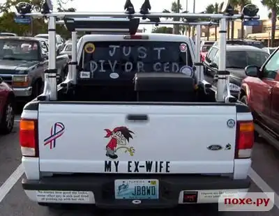 Надпсись гласит "Только что разведен" и пониже "Это моя бывшая жена"