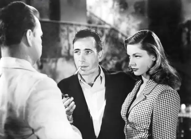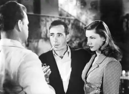В 1942 г. был фильм "Across the Pacific", приключенческая картина о войне. Следующий фильм мог оказаться еще одной военной лентой, но стал фильмом-легендой, наиболее живо ассоциирующимся с именем Хамфри Богарта - "Casablanca". Фильм заслуженно приобрел репутацию величайшей любовной истории, когда либо снятой в кино. История Рика Блейна, хозяина ночного клуба в Касабланке, разрывающегося между любовью и честью, когда его бывшая возлюбленная Ильза Лунд (в исполнении Ингрид Бергман) появляется в Касабланке с мужем, бойцом Сопротивления Виктором Ласло, спасающимся от фашистов, - эта история неподвластна времени. Прощание Богарта и Бергман в аэропорту, клятвы героев Богарта и Клода Рейнса в вечной дружбе и множество других сцен вошли в классику мирового кино. Таким статусом фильм обязан в немалой степени и великолепному подбору исполнителей второстепенных ролей, среди которых можно назвать Клода Рейнса и Конрада Фейдта; а также режиссуре Майкла Кертиса. За свою первую романтическую роль Хамфри Богарт получил свою первую номинацию на "Оскара" (и совершенно непонятно, почему получил "Оскара" в этот раз не он, а другой актер, Пол Лукас, за роль в другом фильме той же студии "Watch on the Rhine").