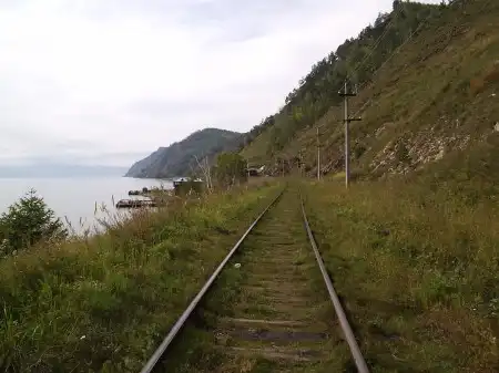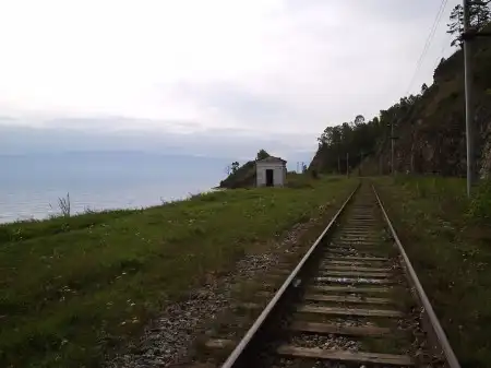 Это участок трассы, практически вышедший из употребления после строительства Иркутской ГЭС, поскольку вода залила часть трассы (сентябрь 2005).