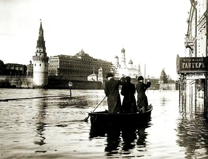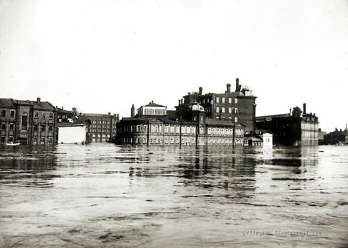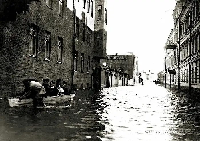 Выдержка из истории: "Накануне Светлого праздника Москву посетило огромное бедствие: разлив реки Москвы, наступивший в настоящем году чрезвычайно поздно, принял чудовищные размеры, превзошедшие все ожидания... Разливом рек Москвы, Яузы и Водоотводного канала захвачена была более или менее значительная площадь 12-ти полицейских участков города, но особенно пострадали пять участков по правую сторону реки Москвы"