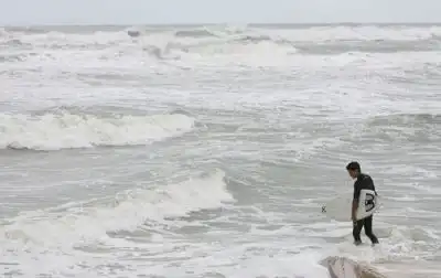 Субтропический шторм Андреа настиг побережье Джорджии, но серфингисты нашли в этом для себя выгоду, так как шторм вызывает высокие волны