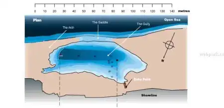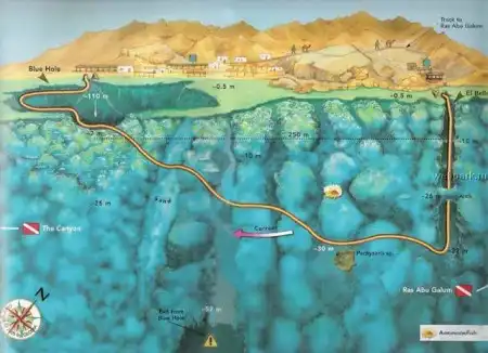 Голубая Дыра в Дахабе - один из самый загадочных и красивых рифов Красного моря, считается одним из лучших дайв-сайтов мирового класса и одним из самых опасных. Легенды гласят, что в незапамятные времена в этих местах жил эмир, и была у него одна дочь. Когда эмир уходил в военные походы, дочь его предавалась оргиям с местными юношами. А чтобы слухи о ее развратных деяниях не выходили за пределы дворца, несчастных юношей топили в бездонной яме. В конце концов, эмир все-таки узнал о безнравственном поведении дочери и приказал казнить распутницу. Тогда дочь эмира бросилась в эту самую 'Blue Hole' и последние слова ее были: 'Я все равно буду забирать себе всех, кто осмелится войти в воду в этом месте'. Никто не знает, насколько правдива легенда, но мемориальные доски с именами погибших здесь аквалангистов наводят на размышления.