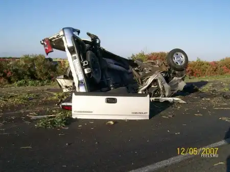Жесть как тачку скрутило. Мужика спас непристегнутый ремень и впереди стоящие кусты...