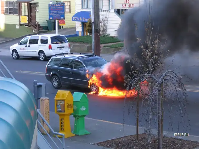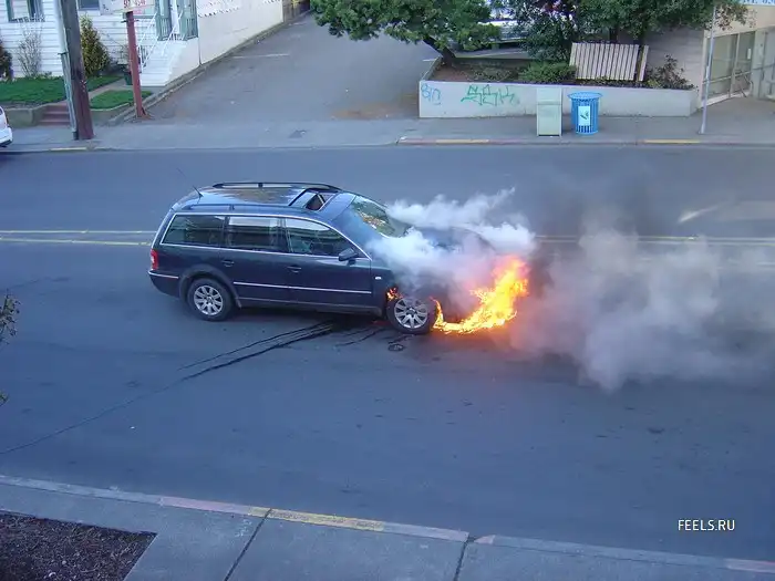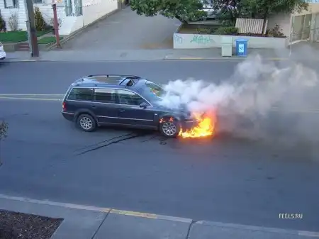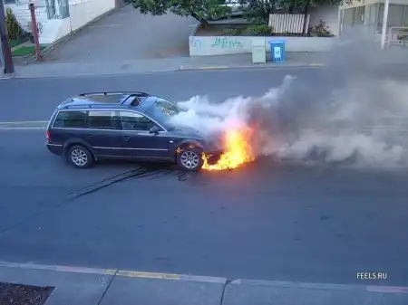 Сосед вылез из машины и пошел на минутку домой, внезапно тачка загорелась...
