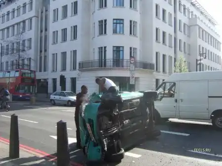 Автобус протаранил такую малютку... Водила автобуса уволен, чувак получил бабло за ущерб...