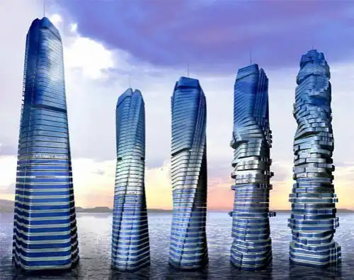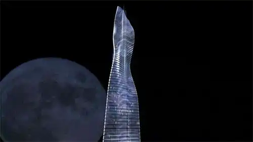 А если позволить всем этажам вращаться согласованно, под управлением компьютера, возникают интересные эффекты...Задав разную скорость вращения для различных этажей, по башне можно пускать сверху вниз и снизу вверх крупные волны. И ведь им есть где разгуляться — высота здания составит примерно 310 метров. Представьте, как это подвижное великолепие будет выглядеть ночью!