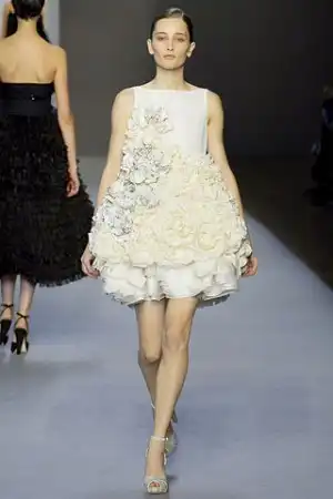 А вечерние и коктейльные наряды, украшенные цветами из ткани - это просто произведение искусств.