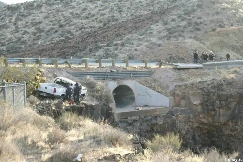 История: Машина вылетела за ограждение и остановилась на краю пропасти.
