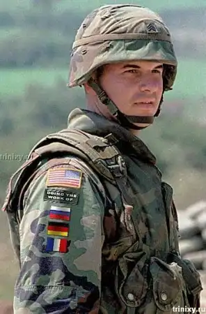 История: Американский содат в Ираке с нашивками "Делая работу за"