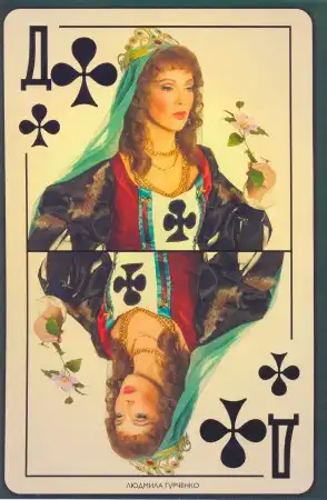 По замыслу Екатерины Рождественской известные люди были загримированы под карты