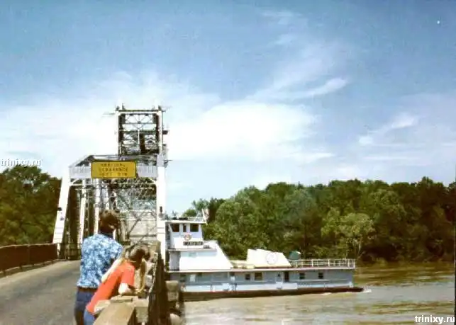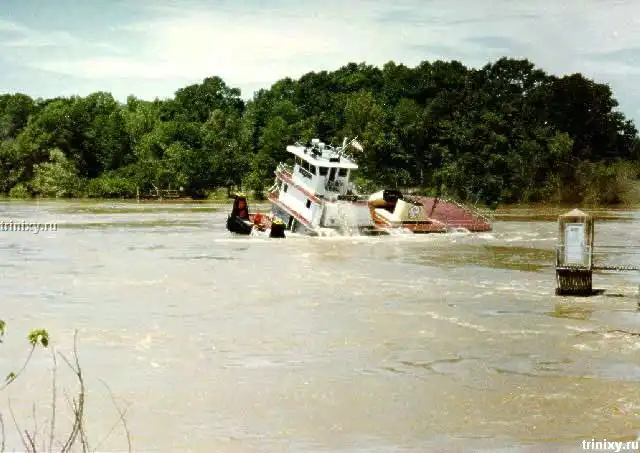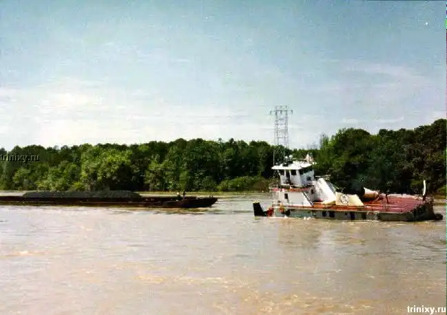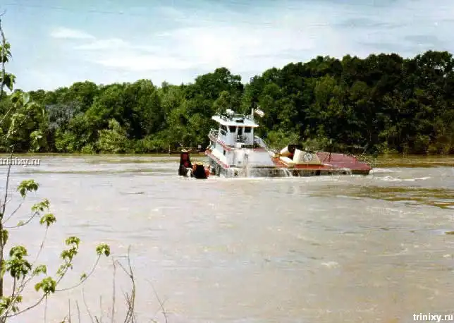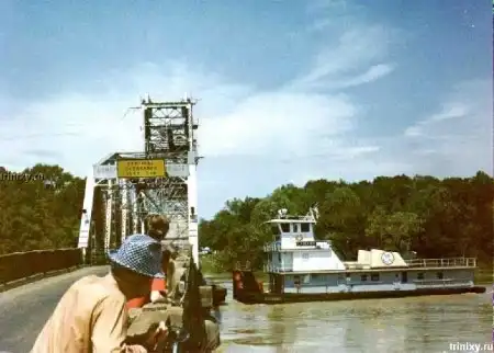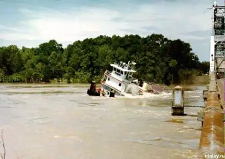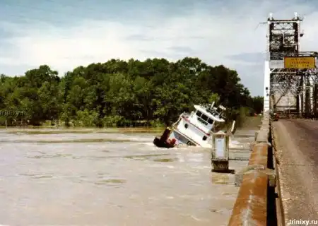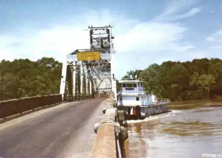 История: На фотографиях показан буксир, который подныривает под мост и выплывает с другой стороны