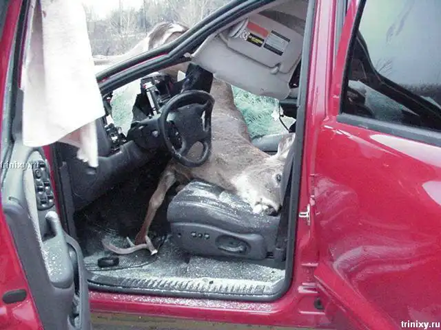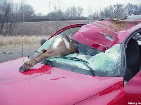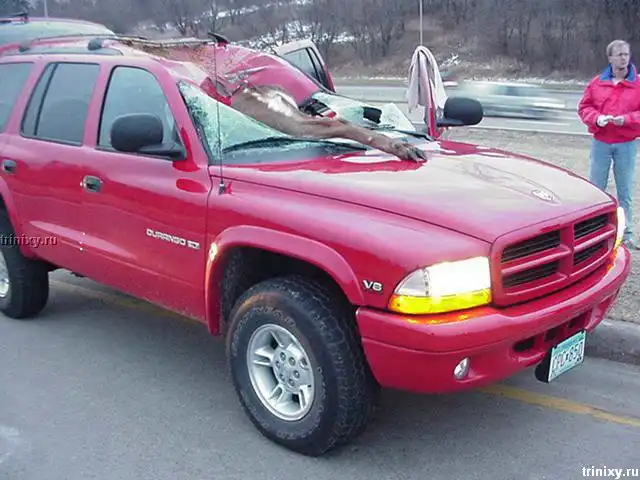История: Олень летел через лобовое стекло в красный Dodge Durango