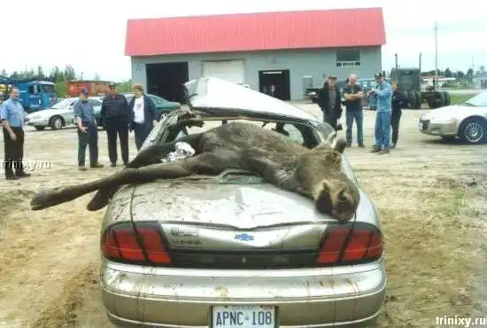 Водитель ехал внимательно, так как знал, что в данном районе живет много лосей. Но быстро...