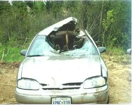 История: Эта фотография рассылалась по мылу со следующим текстом: "Моему дорогому мужу! Перед твоим возвращением из командировки хочу рассказать тебе про небольшую аварию, в которую я попала около нашего гаража. Когда я возвращалась из супермаркета на нашем пикапе, я случайно перепутала педали тормоза и газа и въехала в гараж, чуть поцарапав твою машину. Но я думаю, что такой добрый человек как ты сможет меня простить. Когда ты вернешься, мы будем заниматься любовью снова и снова. PS. Сосед настоял на том, чтобы я прислала тебе фотографию аварии"