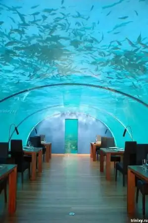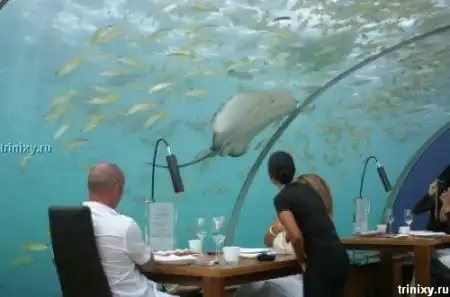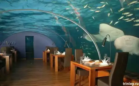 История: Подводный ресторан, в котором можно отобедать, глядя на рыбок.