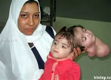 История: Египетская девочка родилась с очень редким заболеванием. Во время беременности имбрион начинает разделяться, но не до конца. Часто такие дети рождаются с дополнительными органами, в данном же случае девочка родилась со второй головой.