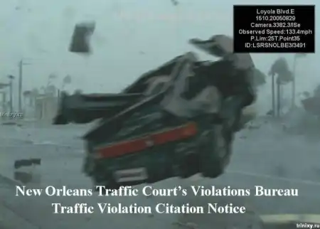 История: Полицейская камера засняла машину лятящую со скоростью 133 миль в час во время урагана Катрина