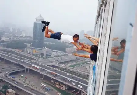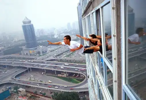 36 летний китаец делает просто безумные фото, при этом он практически не использует постобработку изображений, результата достигает с помощью почти прозрачных тросов, сложной системы зеркал и незаметных поддерживающих конструкций