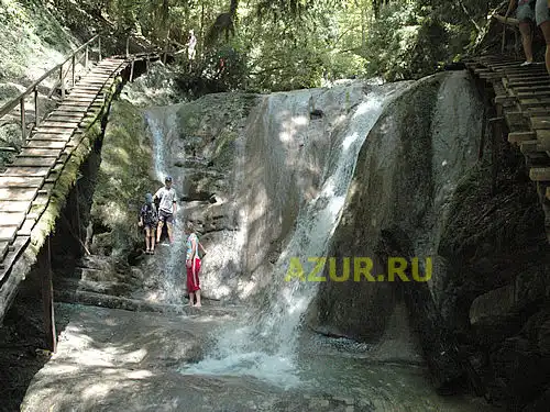 От аула Кичмай вас с ветерком повезут на вездеходах ГАЗ-66 по долине реки Шахе до урочища Джегош, где и низвергаются со скальных уступов великолепные водопады. Маршрут неплохо оборудован: по деревянным лестницам вы будете подниматься вверх по урочищу, осматривая водопад за водопадом. Есть возможность искупаться в купальных чашах, образованных падающей водой. Перед отъездом из урочища Джегош вам предложат обед в одном из здешних кафе.