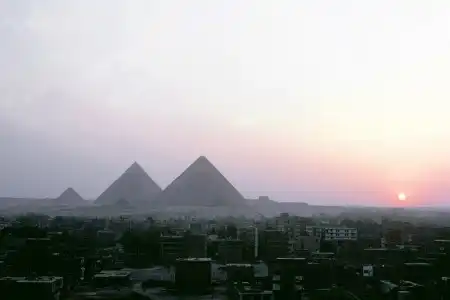 2. Sunset and a View of One of the Seven Wonders of the World, the Great Pyramids