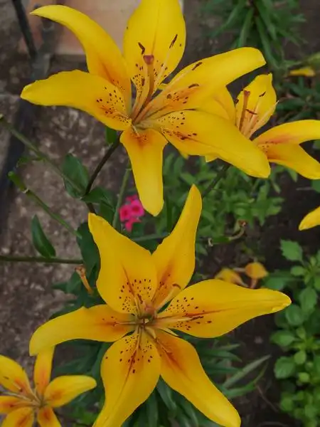 Лилии - розовые, белые, желтые. Всякие. Чтобы глаз радовало.