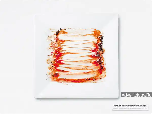 Как же повезло людям, которые разбираются в современном искусстве. Для них, то, что изображено на принтах – не просто остатки десерта, размазанные по тарелке, а настоящий шедевр поп арта. В общем, как уже можно было догадаться, реклама не для всех.
