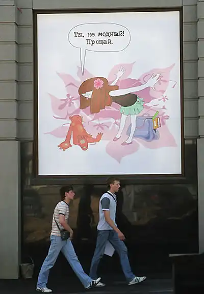 "Креатив" от ЦУМа (естественно не нашего). "креатив" – наружную рекламу ЦУМа "Скоро в школу". Чего только стоит один из слоганов – "Если ты не в Prada - ты лох!". В общем, высказывайтесь.