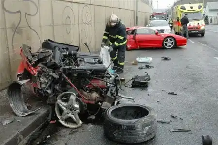 Он просто молодец за очень короткий срок времени он умудрился разбить Ламборджини за 400 000 долларов, но это еще цветочки... У него получилось разобрать Феррари на 2 части на полном ходу... Мастер!