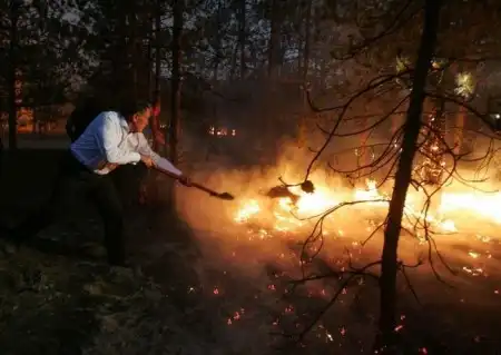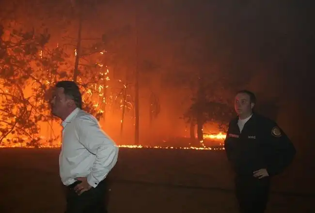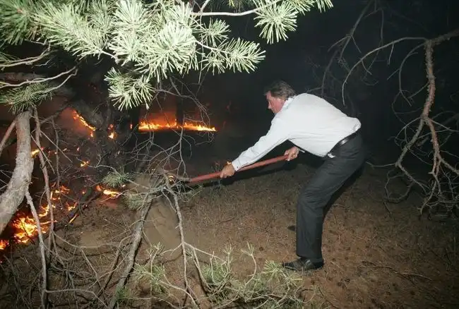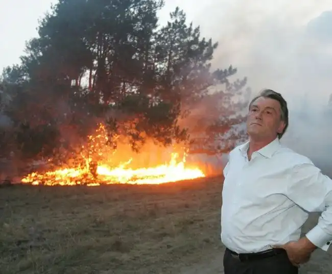 Во время позавчерашней рабочей поездки Виктора Ющенко в Херсонскую область так случилось, что самолет президента пролетал над лесом, котором бушевал пожар. Ющенко, как настоящий патриот, без раздумий решил принять личное участие в ликвидации пожара.