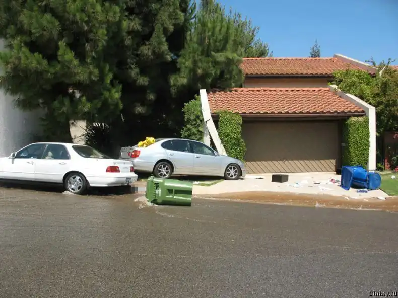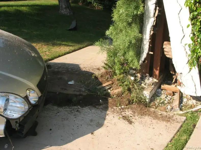 Она умудрилась сбить дерево, вырвать из асфальта гидрант, въехать в гараж одного из домов