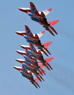 Истребители МиГ-29, авиационной группы высшего пилотажа "Стрижи":