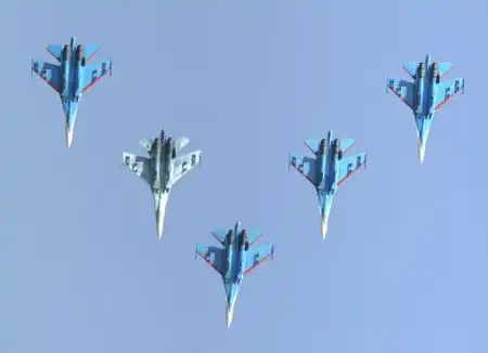 Почти 100 тысяч зрителей на авиасалоне МАКС-2007 встретили криками «ура» и бурными аплодисментами исполнение фигуры высшего пилотажа «бочка» девятью самолетами пилотажных групп "Русские витязи" и "Стрижи".